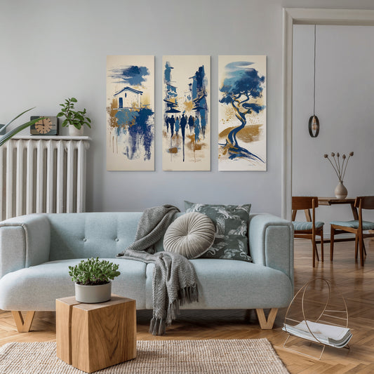 Σετ Τρίπτυχος Πίνακας Village Lent